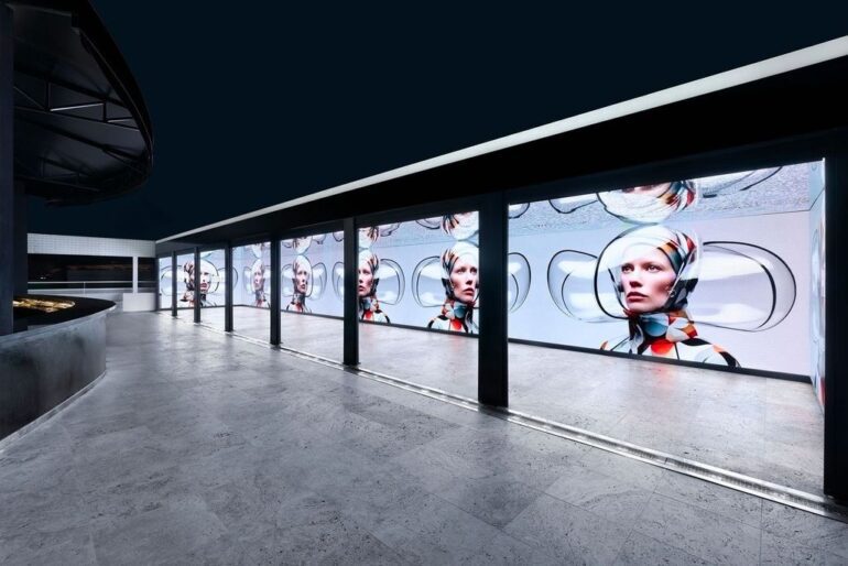 The heart of the collaboration is Hï Ibiza’s rooftop Dom Pérignon bar, now home to the world’s first dedicated nightclub art gallery. Built using custom-engineered LED displays by W1 Curates, the space replicates each artist’s color palette with stunning accuracy, while mirrored ceilings enhance the immersive effect and expand the visual depth.